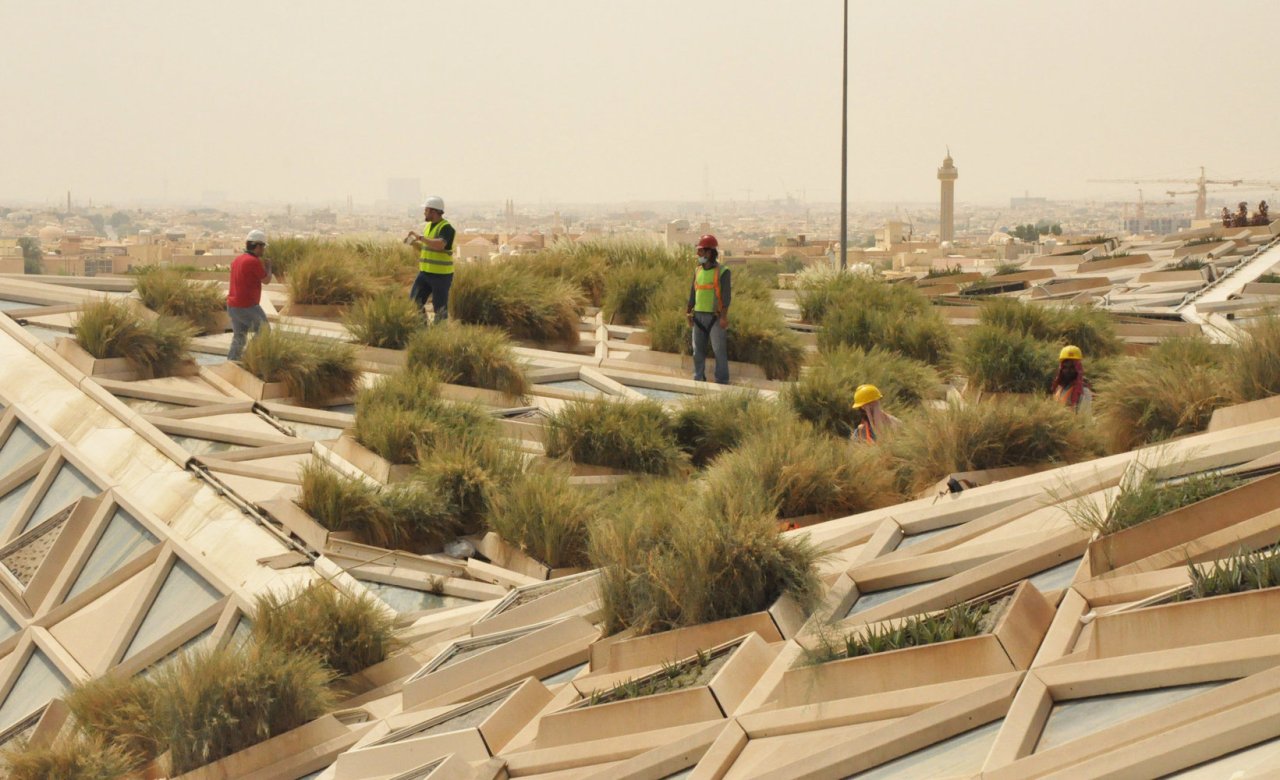 Image Credit: Patrick Blanc photographying the construction of the KAFD Conference Center designed by SOM in Saudi Arabia. https://www.verticalgardenpatrickblanc.com/realisations/riyadh/kadf-conference-center-mega-roof-riyadh